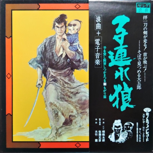 原作・小池一夫、画・小島剛夕による劇画『子連れ狼』を浪曲化したレコード。浪曲なので、基本は三味線の伴奏ですが、要所々々に佐藤允彦のシンセサイザーによって生成された効果音と劇伴が入り、サウンドをぐっと引き締めます。終盤の盛り上がり(バラシ)では、浪曲師の唸りと三味線の掛け合いに果敢に切り込むプレイが光ります。浪曲師たちの熱演に電子音が食らいつく攻防は聴きどころです。
